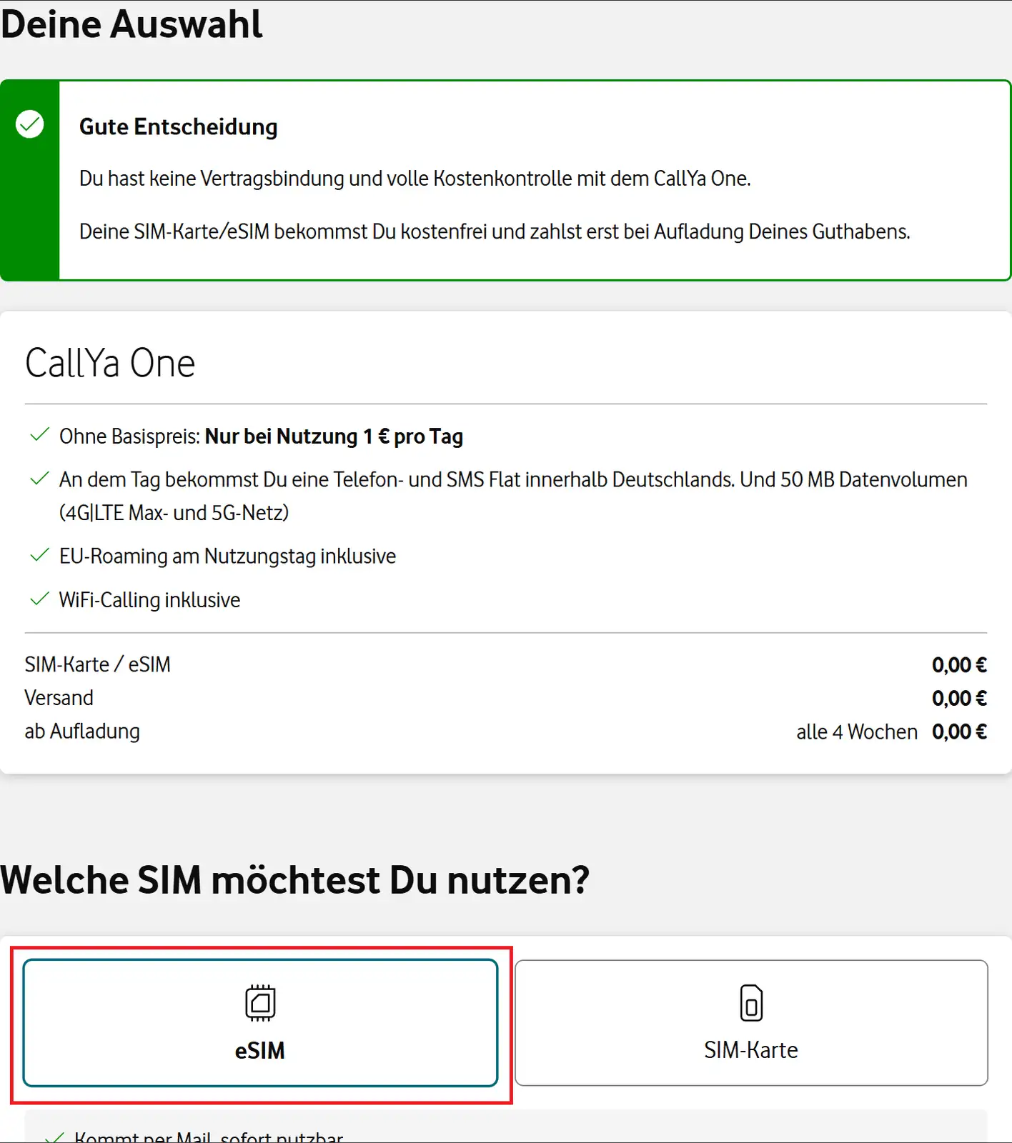 德國VODAFONE CALLYA ESIM 介紹 (0月租,要求護照實名)